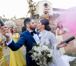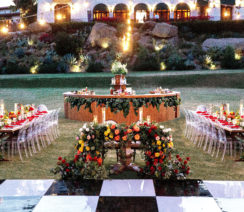 Hummingbird Nest RanchRed wedding decorations is just one way to kick off the romance. The color gave the event a touch of joyfulness. A unique vintage photobooth had the guests taking pictures to remember the celebration. A stunning wedding with elegant and magical night lights highlighted the outdoor venue, making this event memorable.
